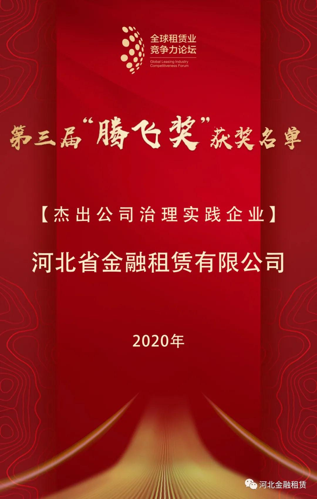 全球租賃業(yè)競爭力論壇峰會11月4日至5日在天津舉行,近千位國內(nèi)外融資租賃行業(yè)嘉賓齊聚一堂,匯智論道,“聚焦雙循環(huán),謀新十四五”。本次峰會同時(shí)頒發(fā)第三屆中國融資租賃“騰飛獎(jiǎng)”,河北省金融租賃有限公司榮獲中國融資租賃“杰出公司治理實(shí)踐企業(yè)”榮譽(yù)。