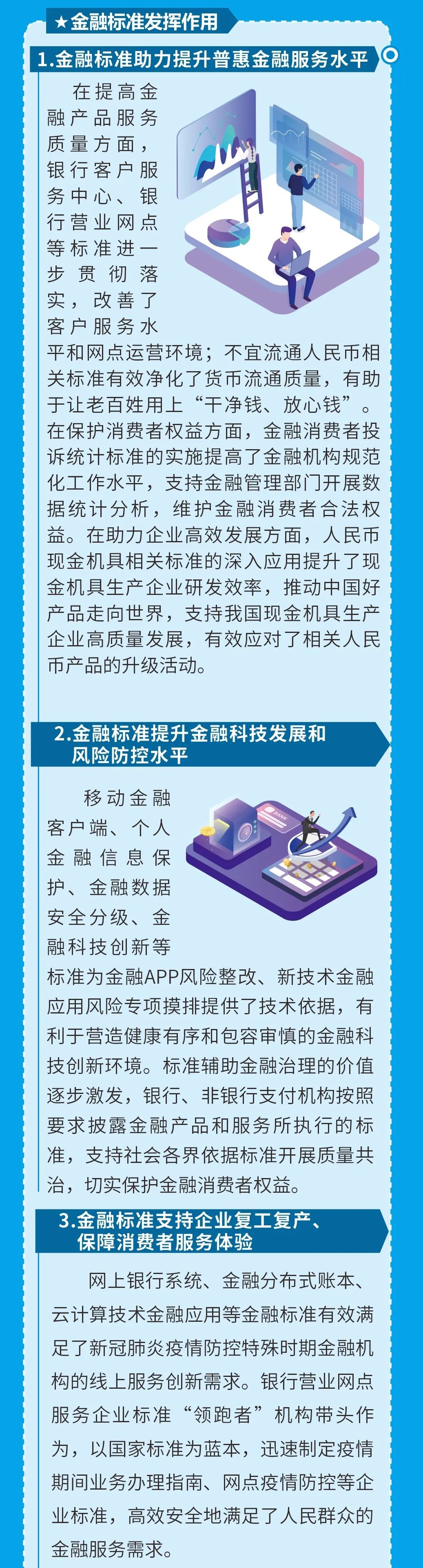 金融標(biāo)準(zhǔn)是金融業(yè)健康發(fā)展的技術(shù)支撐,是金融業(yè)治理體系和治理能力現(xiàn)代化的基礎(chǔ)性制度,中國人民銀行宣傳推廣重點(diǎn)金融標(biāo)準(zhǔn),切實(shí)做好金融從業(yè)人員及消費(fèi)者金融標(biāo)準(zhǔn)化宣教和普及工作,在行業(yè)內(nèi)營造對標(biāo)達(dá)標(biāo)的良好氛圍,引導(dǎo)消費(fèi)者使用達(dá)標(biāo)服務(wù)與產(chǎn)品,進(jìn)一步維護(hù)消費(fèi)者合法權(quán)益。
