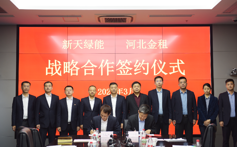日前,河北省金融租賃有限公司(以下簡(jiǎn)稱(chēng)“河北金租”)與新天綠色能源股份有限公司(以下簡(jiǎn)稱(chēng)“新天綠能”)簽署戰(zhàn)略合作協(xié)議,并就深化合作展開(kāi)深入交流。河北金租黨委書(shū)記、董事長(zhǎng)徐敏俊,新天綠能黨委書(shū)記、總裁梅春曉及雙方相關(guān)業(yè)務(wù)負(fù)責(zé)人出席簽約儀式。