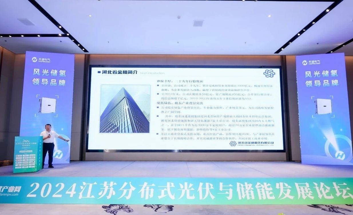 河北金租清潔能源部總經(jīng)理葛志同在論壇上做主題宣講,圍繞河北金租在綠色租賃領(lǐng)域的品牌實(shí)力和“光易租”產(chǎn)品進(jìn)行介紹。河北金租是最具綠色產(chǎn)業(yè)特色的金融租賃公司之一,致力于為全國(guó)光伏電站客戶(hù)提供融資融物服務(wù),為順應(yīng)當(dāng)前分布式光伏市場(chǎng)形勢(shì)變化,利用豐富的項(xiàng)目經(jīng)驗(yàn)推出更契合未來(lái)發(fā)展趨勢(shì)的“光易租”產(chǎn)品模式,誠(chéng)摯邀請(qǐng)設(shè)備廠(chǎng)商、EPC、項(xiàng)目運(yùn)營(yíng)商等產(chǎn)業(yè)伙伴攜手合作,共同開(kāi)拓江蘇市場(chǎng),實(shí)現(xiàn)互利共贏(yíng)。