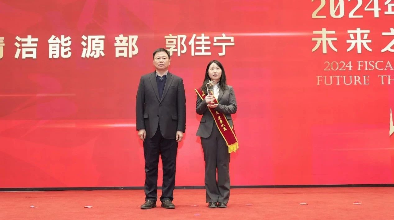 ▲監(jiān)事長楊應群(左)頒發(fā)未來之星獎
